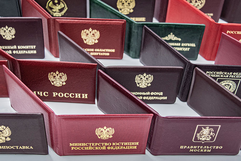 - 95 × 65 мм и 70 × 100 мм в сложенном виде — распространённые форматы для корочек служебных удостоверений